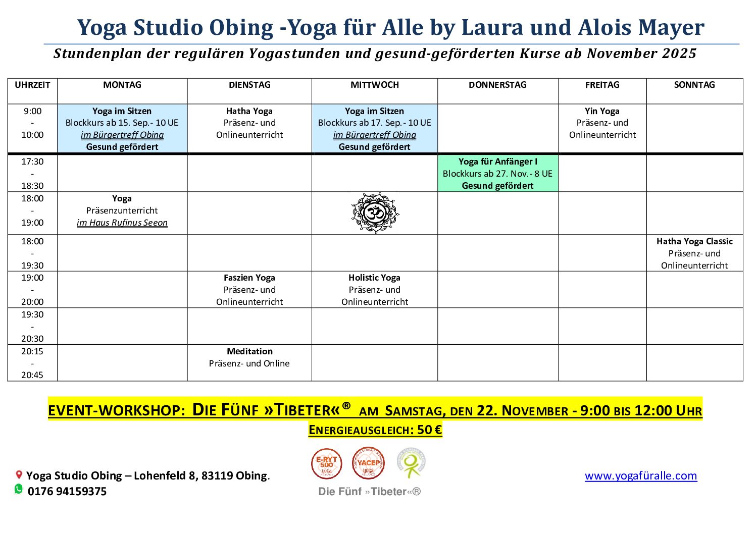 – Der Kurs findet im Yoga Studio Obing in präsenz statt!